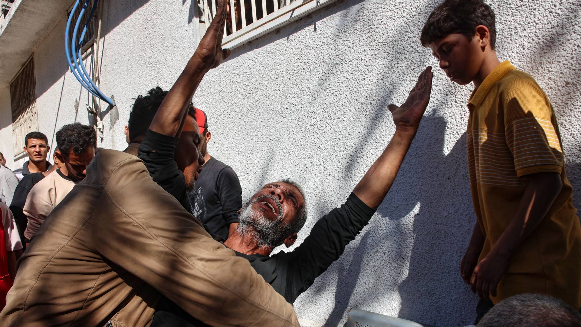 فلسطيني يبكي أحد أفراد عائلته في قطاع غزة
